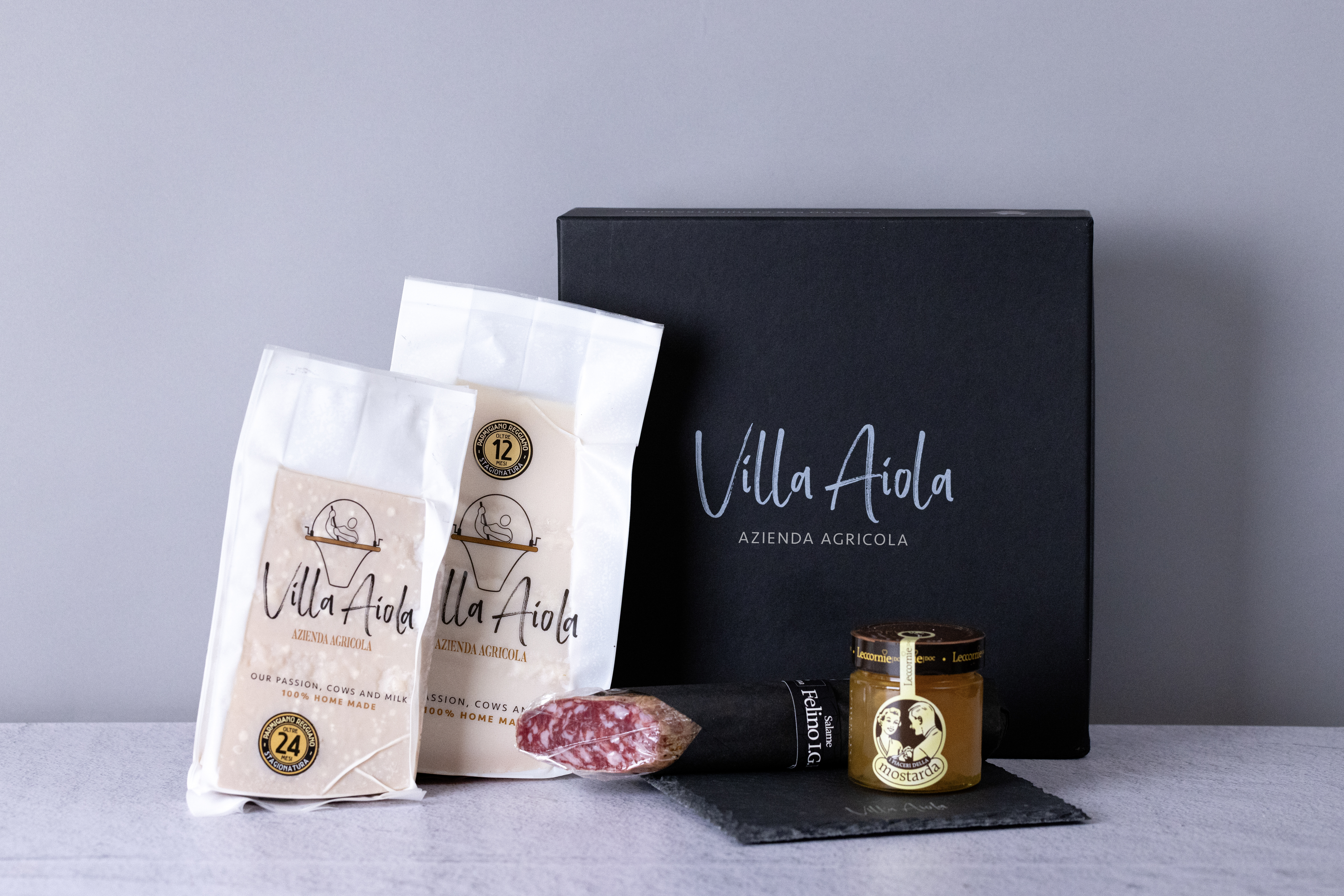 Scatola MEDIA, colore nero e personalizzata Villa Aiola.