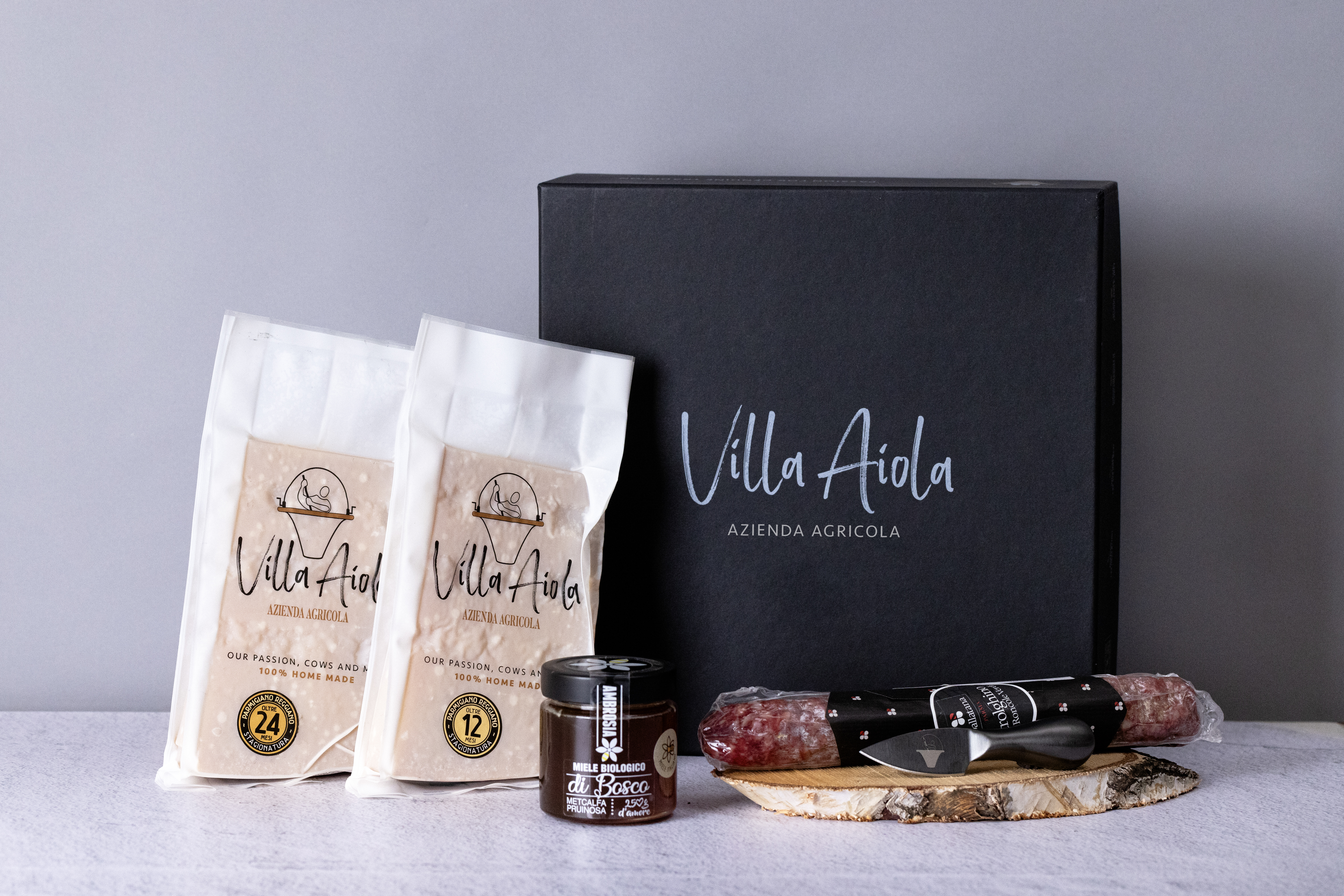 Scatola MEDIA calamitata, colore nero e personalizzata Villa Aiola.